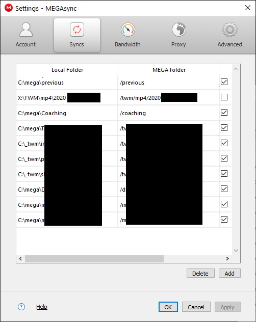 Below is an idea of how only specific local folders are synchronized to the MEGA cloud.